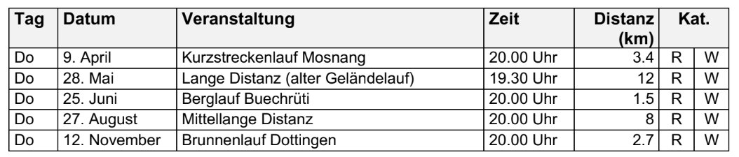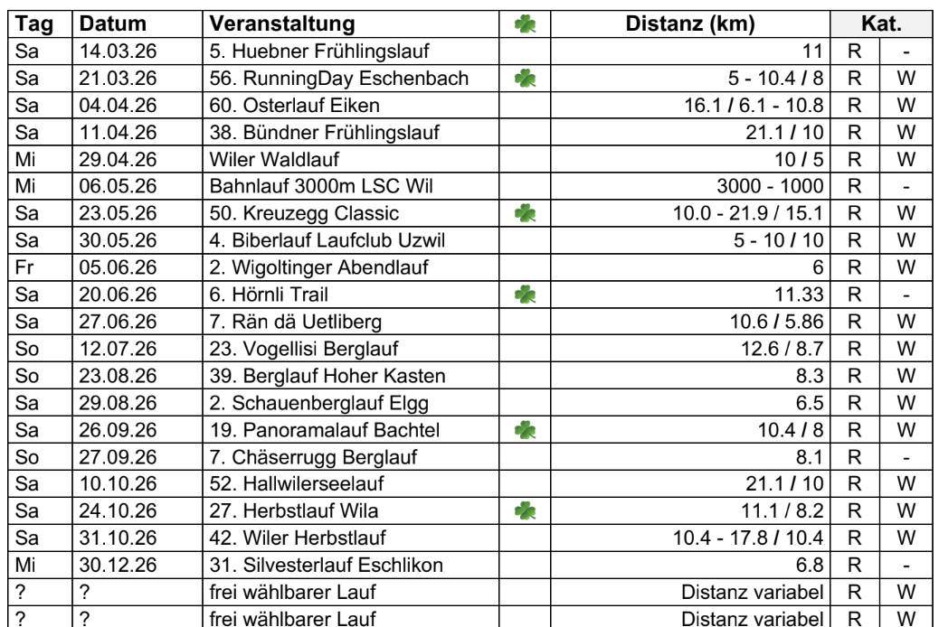 Alle Teilnehmenden müssen mindestens 4 Läufe aus der untenstehenden Liste absolvieren. Die besten 4